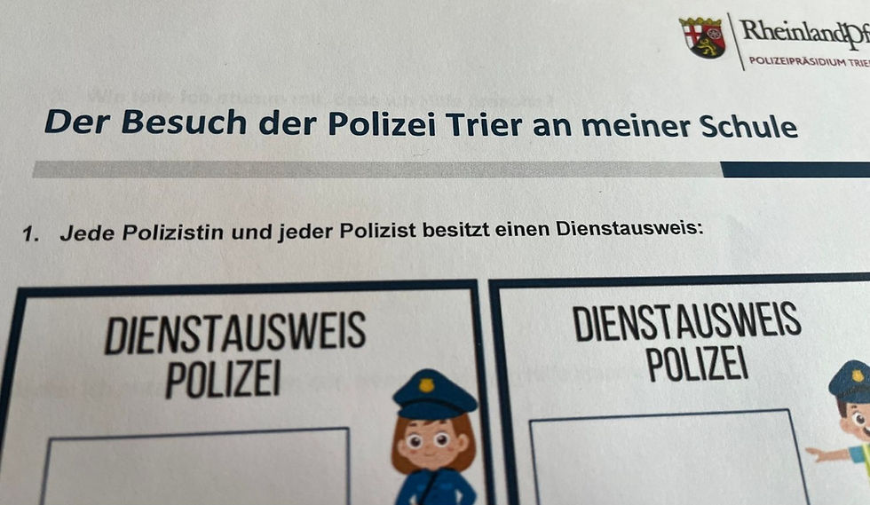 Am 16.04.26 bekamen die beiden vierten Klassen besonderen Besuch: Eine Polizistin und ein Polizist der Polizeiinspektion Trier waren zu Gast und brachten den Kindern ihren spannenden Berufsalltag näher.